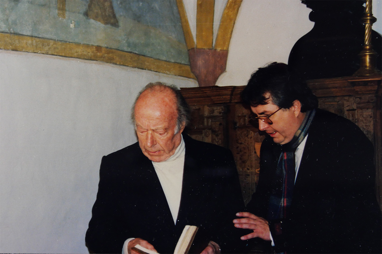 Nach den Aufnahmen saßen wir noch bei einem Gespräch in der getäfelten Sakristei der kleinen Kirche. Heinz Rühmann war sichtlich erschöpft von den harten Arbeitstagen, aber er wirkte zugleich auch gelöst und – man möchte sagen – glücklich. „Es ist der größte Text, der einem Schauspieler vergönnt ist, ihn vortragen zu dürfen.“ Heinz Rühmann beugte sich ein wenig vor und legte seine Hand auf meinen Arm. „Ich bin dankbar, daß ich diese wunderbare Aufnahme machen durfte.“